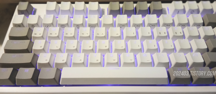 키소리에 귀기울여 듣다보니 논외로 일반 타이핑시는 보글x통울림 소리가 더 잘 들리는데요. 반면에 차분히 키를 하나씩 누르면 서걱서걱 소리가 크게 들리기도 합니다. 또 키마다 소리에 편차가 있기도 하네요.