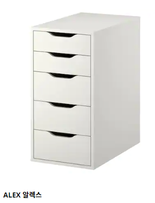 알렉스 5서랍장은 89000원대고, 문 열리는 위의 알렉스 제품은 69000원대였어요.